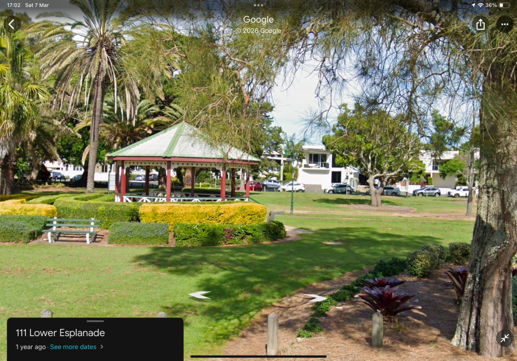 Location on maps for iPhone: https://maps.apple.com/?address=Between%20Upper%20and%20Lower%20Esplanade,%20Manly%20QLD%204179,%20Australia&auid=10587873317941120158&ll=-27.446590,153.186292&lsp=9902&q=George%20Clayton%20Park%20/%20Wynnum%20Bandstand%20Park&t=m